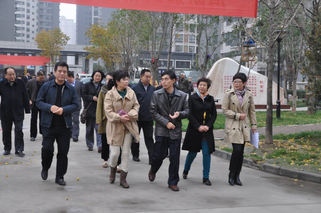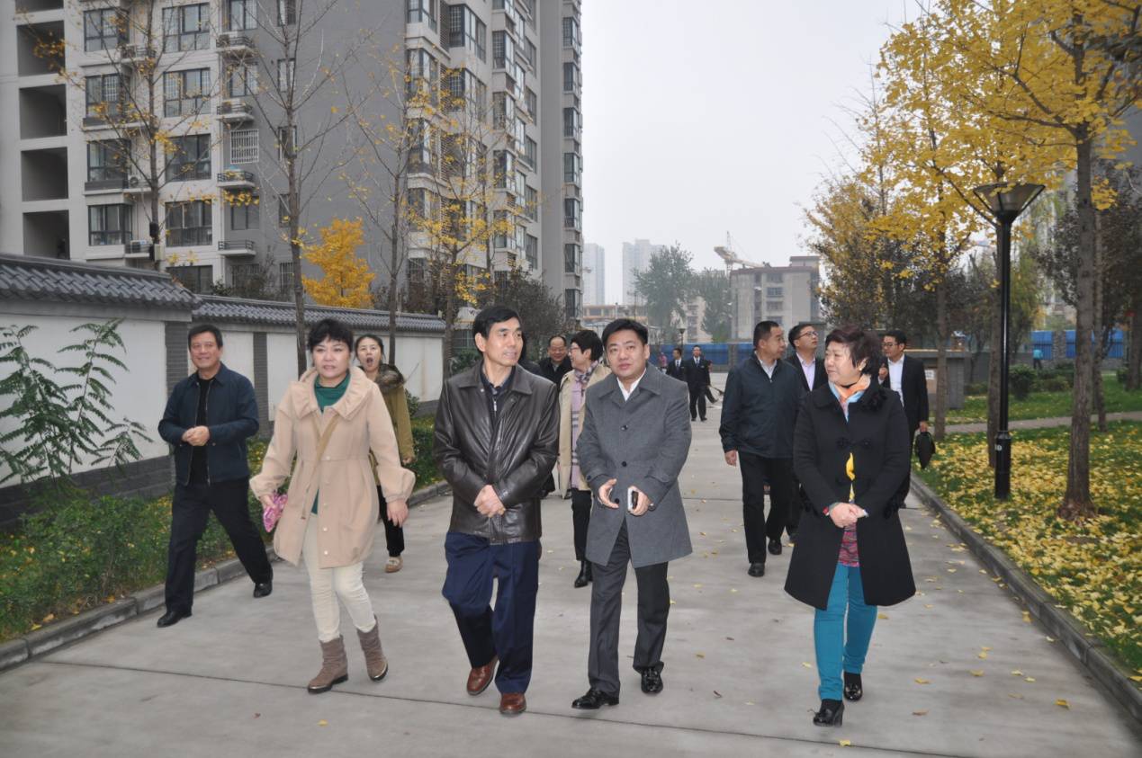 西安宏府企业集团贾旭芝总裁、杨振总经理及企业高管陪同余主任一行在中堡子村综合改造项目一期--宏府鹍翔九天项目调研。宏府鹍翔九天项目由西安宏府集团投资55亿开发,余主任一行视察的一期项目占地320亩,总建筑面积约123万平米,共回迁安置群众1427户4235人。项目功能配套齐全,极大便利了回迁群众生活,为群众带来了“环境优美、绿色生态、节能环保”的城市花园。