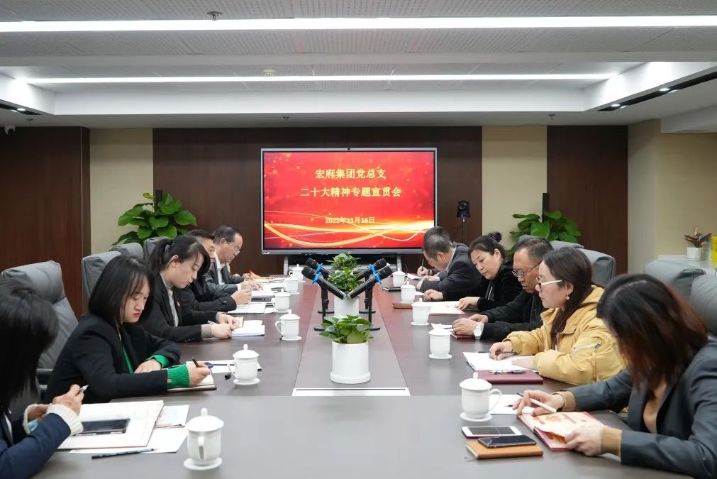 2022年11月16日下午,中共西安市宏府投资控股集团有限公司总支部委员会召开党的二十大精神专题宣贯会,集团全体党员、发展对象、积极分子参加会议。
