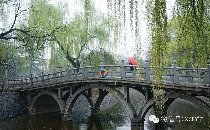 一人,一伞,走过一座石桥,这么安静的西安你见到过吗?