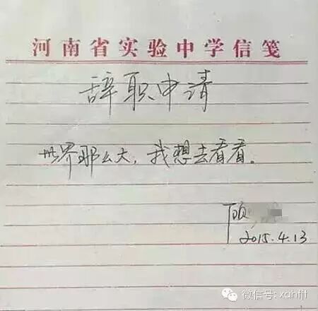 一份辞职申请被发到网上,上面只有10个字:“世界那么大,我想去看看。”网友称其为“史上最具情怀的辞职申请”