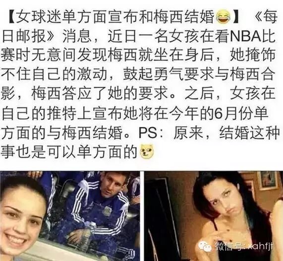 这句话源自一则新闻标题,“女球迷单方面宣布和梅西结婚”。网友们发现原来结婚也是可以单方面宣布的,于是“我单方面宣布”迅速风靡网路,并被各路粉丝引用出现了“我单方面宣布和XX结婚”。