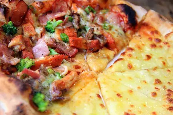 那不勒斯披萨最大的特点就是饼底超薄而且韧性十足,这需要用“世界上最细的面粉”提前三天发酵,才能达到这样达标的嚼劲。披萨的魅力就在于厨师随心所欲的创作,面饼在空中抛接五六次之后加上各种花式繁多的食材,每一张可以说都是独一无二的。店里12款披萨风格迥异,狂野和榴莲是绝对值得推荐的两款。狂野是肉食者的天堂,五六种不同的肉类镶嵌其间,淋上自己熬制的黑胡椒和番茄汁,口感丰富而浓郁;榴莲披萨用的是新鲜的榴莲果肉,新鲜果肉的甜糯感跟榴莲酱的味道直接是天壤之别,对了,如果你想一次吃两种味道,还可以做成双拼,两种口味的碰撞会让你的味蕾一次大满足。