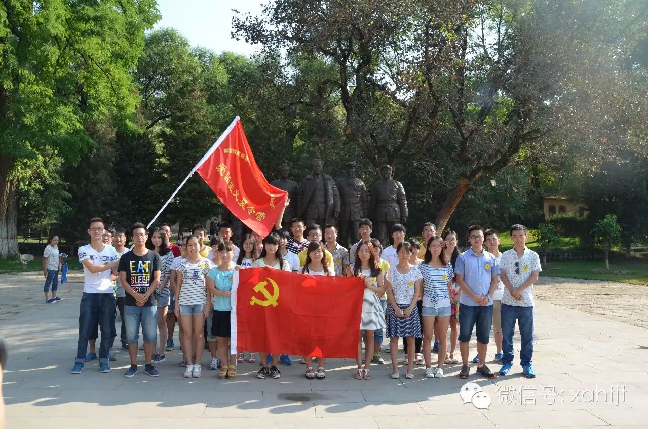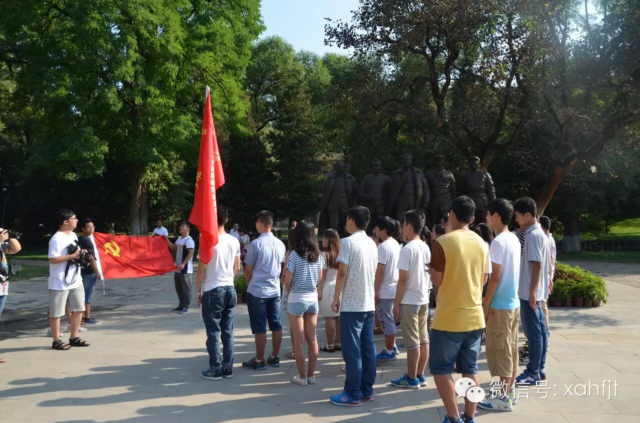 清晨的枣园环境幽美,空气清新,各个建筑若隐若现地点缀林间。在五大书记雕像前,由入党积极分子刘一兵带领大家诵读入党誓词、展示党旗,让同学们深刻体会到共产党人不怕牺牲、艰苦奋斗,为共产主义奋斗的坚强革命意志。何伟伟同学说:“延安之行使我们收到了一次最生动的党性教育,坚定了我们的信仰,在那么艰苦的年代,延安的抗战大学吸引了全国无数年轻人,虽然条件艰苦,露天食堂,集体宿舍,但大家都怀着崇高的奋斗目标,在新的时期,我们更要坚定信仰,在党的领导下继承和发扬这种精神。”