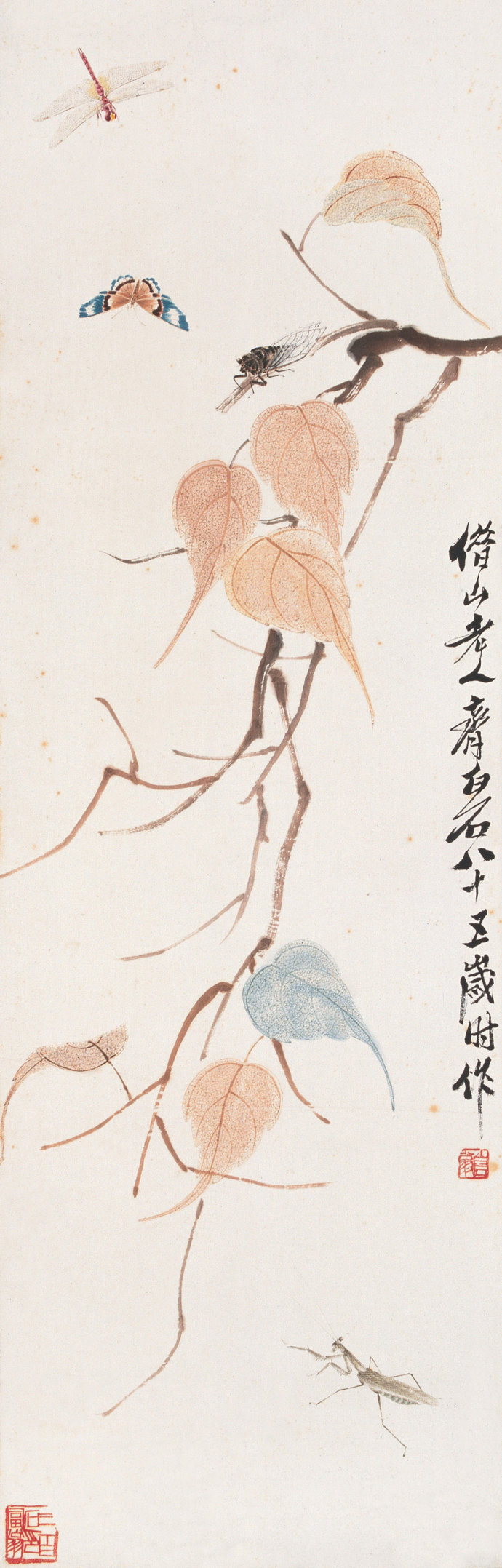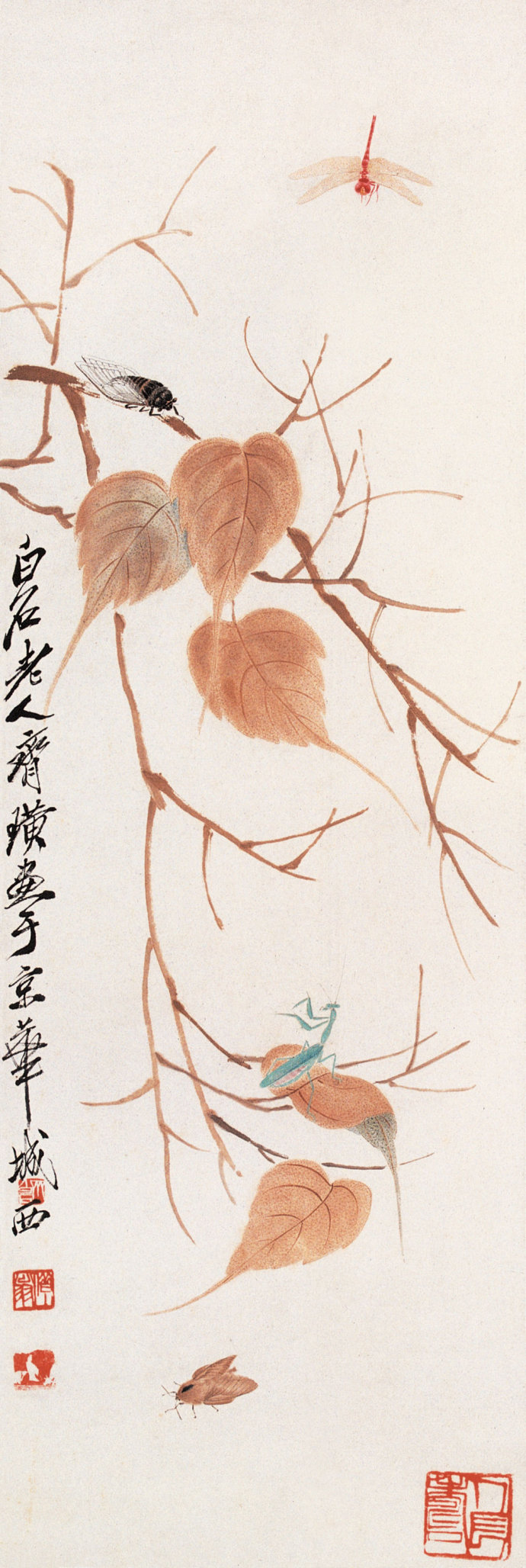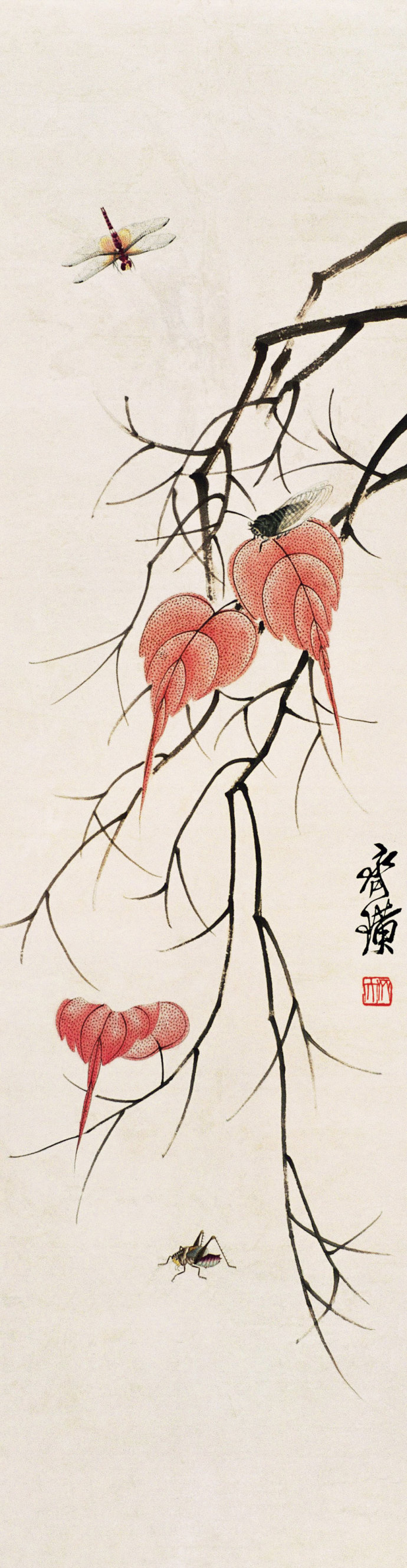 蕉叶蝉 1945年作贝叶草虫图 贝叶草虫 贝叶草虫 蝉 1947年作贝叶草虫 秋鸣 芭蕉鸣蝉图 扁豆 枫叶蝉 红荷鸣蝉 1924年作秋声图 老少年 牵牛草虫 芋叶海棠 松蝉