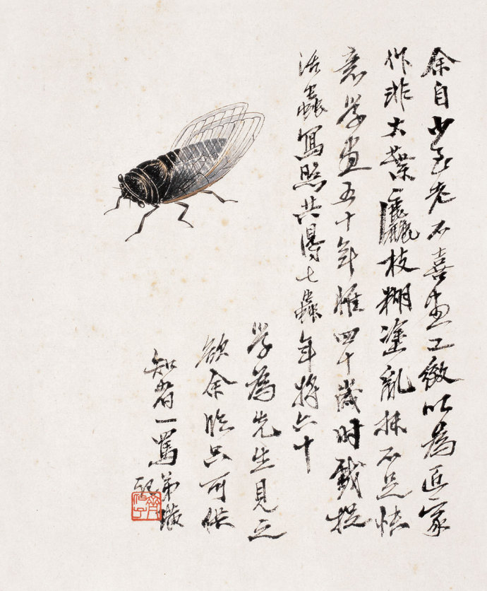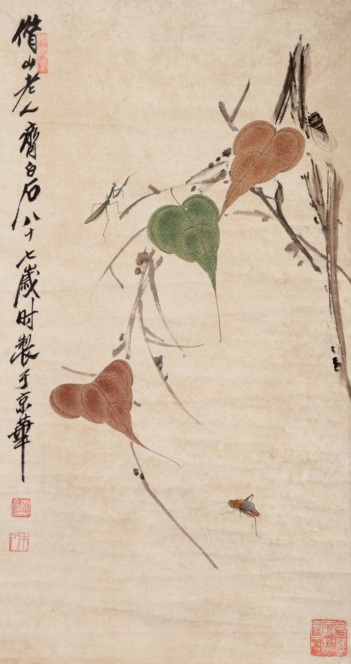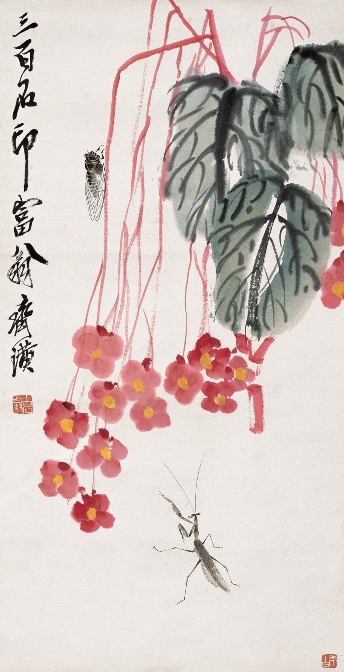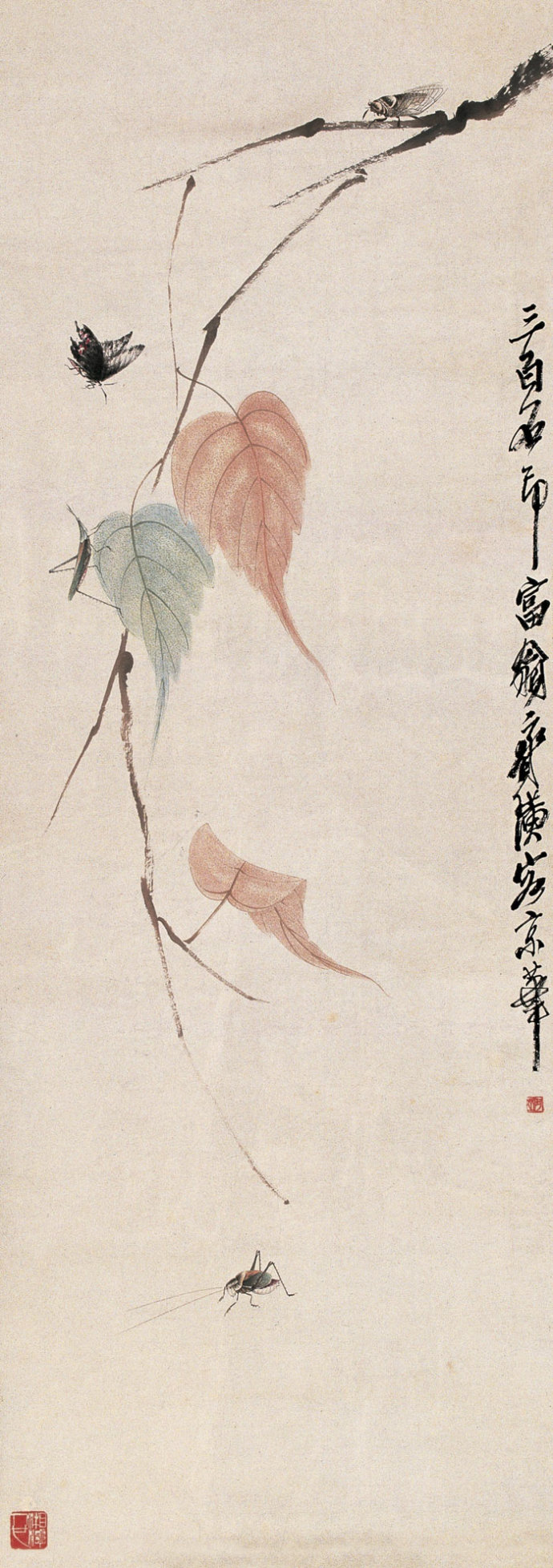 蕉叶蝉 1945年作贝叶草虫图 贝叶草虫 贝叶草虫 蝉 1947年作贝叶草虫 秋鸣 芭蕉鸣蝉图 扁豆 枫叶蝉 红荷鸣蝉 1924年作秋声图 老少年 牵牛草虫 芋叶海棠 松蝉