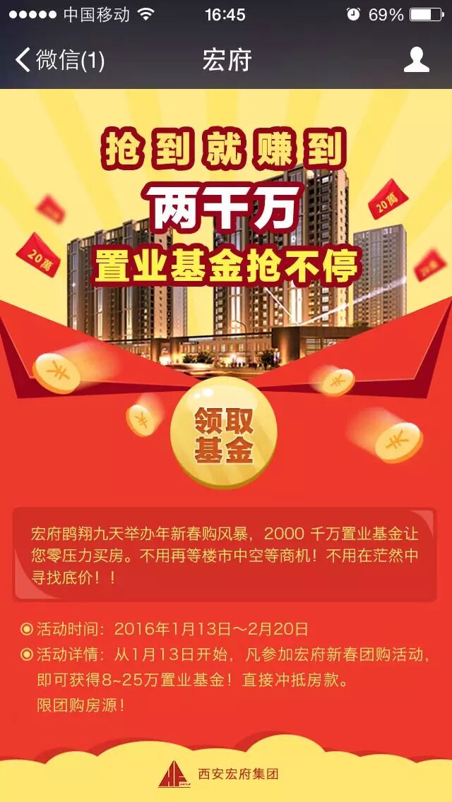 宏府鹍翔九天新春团购风暴 , 2000万置业基金 让您零压力买房