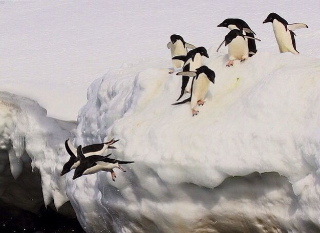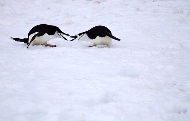 企鹅经常互为镜像,就像上面chinstraps的样子,这么做是为了更牢固的友谊。