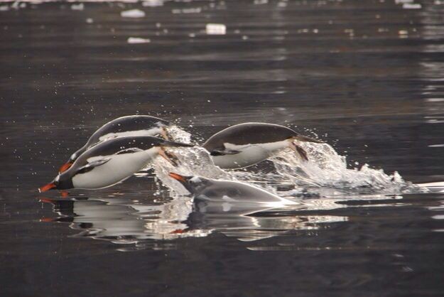 在水中,虽然,企鹅既是捕食者又是猎物。他们更优雅,并且速度快了很多。