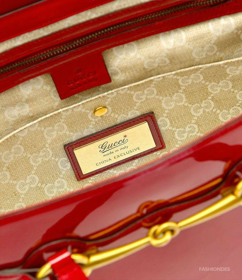 Gucci为马年推出特别系列,包括Bright Bit手提包,小巧肩背包和手拿包,亮漆皮材质采用了中国人春节最传统的大红配色。虽然没有出现马的形象,但品牌著名的设计标识之一马衔扣已经足以代表马年的主题,而作为为中国限量制作的包款,包的内侧特别镶有一块印有“CHINA EXCLUSIVE”(中国限量)的铜质铭牌,并饰有代表中国的红五星。