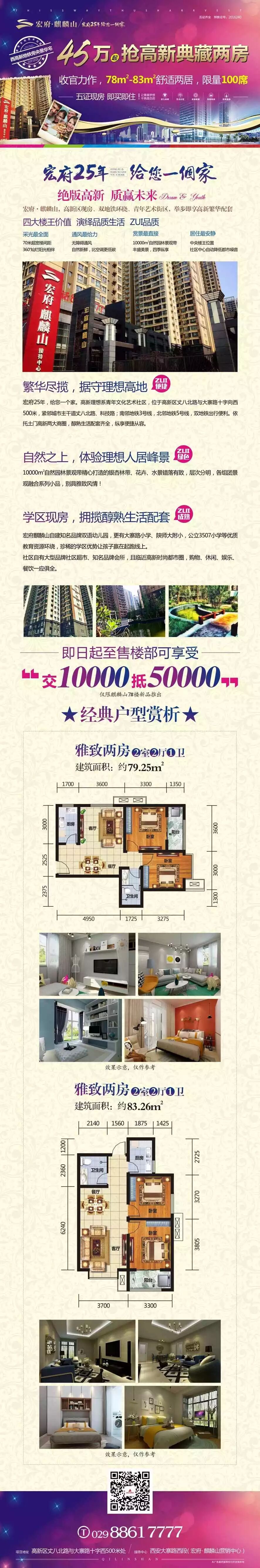缘何国庆节期间宏府麒麟山能够出现如此火爆的活动场面,成交量亦非常喜人,归结起来源于宏府麒麟山作为高新白领首选的青年艺术社区,位于高新区丈八北路与大寨路十字向西500米。生活配套醇熟,地铁3号、5号线环绕,属于高新中、高档住宅聚集区;热销的楼王7#楼更是备受青年置业者的追捧。 7#楼“楼王”位处整个小区的最佳位置,从建筑规划,到户型设计,处处彰显匠心。7#楼拥有10000㎡园林景观带,启窗拥览四季丰盛美景;7#楼约70米阔绰楼间距,每天给您阳光的陪伴;最给力的无障碍通风,自然新鲜,比空调更低碳;阔绰的楼间距,自动降低都市噪音,居住最安静,生活更美好!