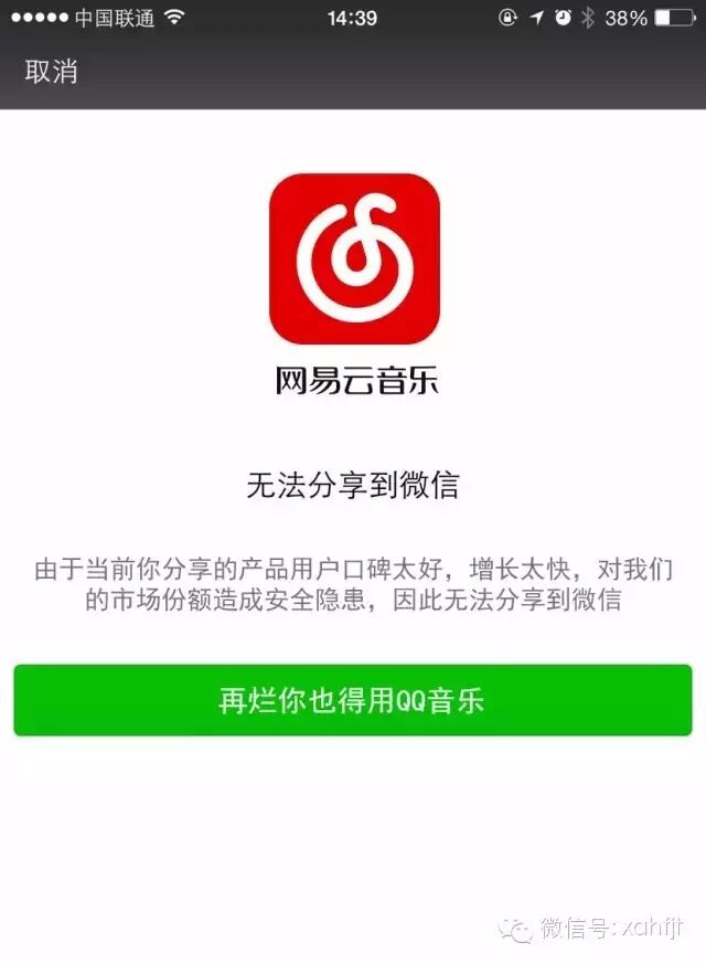最近几天,微信以迅雷不及掩耳盗铃之势,以“安全隐患”为由封杀了网易云音乐、虾米、支付宝等app,禁止分享到微信朋友圈。于是各个产品都炸了……各家纷纷以“被微信封杀”为荣。也是,这年头能让腾讯恐惧的产品也不多呢。