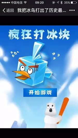 ③开始游戏,操纵白熊击打落下的冰块小鸟,冰块小鸟飞行的距离为自己得分。