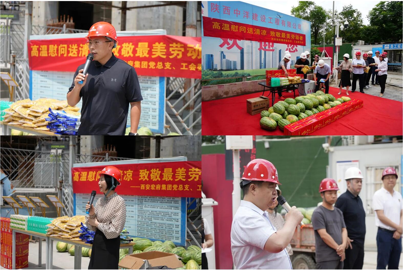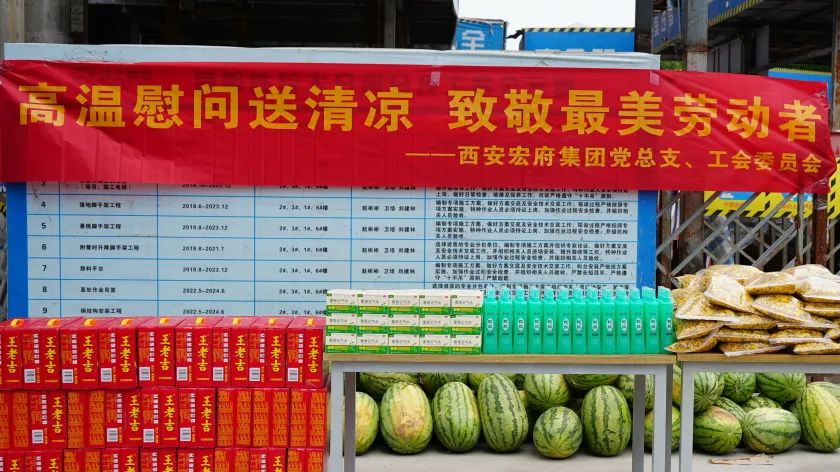 7月31日上午,西安宏府集团党总支、工会委员会开展“高温慰问送清凉,致敬最美劳动者”活动,切实做好夏季防暑降温工作,为施工一线员工送去防暑降温物品,保障员工身体健康,落实安全生产。集团工会主席、党总支委员、集团高管、党员代表及施工一线员工等参加活动。