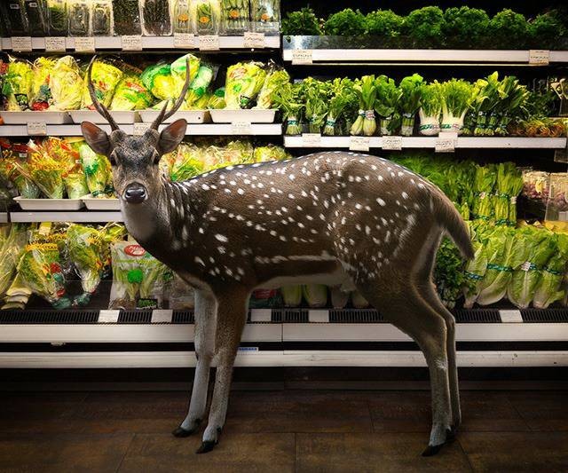 极具创意的画面背后其实是对人类无穷的讽刺,我们掠夺了这个地球上的所有产物,它们只好进入人类的正常生活来寻找原本也属于它们的东西。