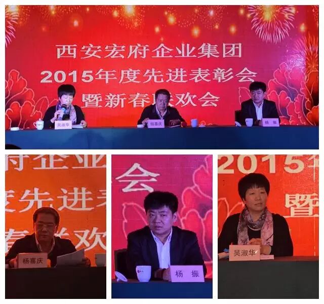 时光飞逝,岁月如梭。转眼间忙碌而充实的2015年已过去,充满期待的2016年向我们走来。新的一年,孕育新的目标和希望,西安宏府企业集团2015年先进表彰暨新春联欢会于1月30日盛大举行,集团杨喜庆董事长、杨振总经理、吴淑华副总经理等集团公司领导与公司全体员工及受邀嘉宾欢聚一堂。会上杨喜庆董事长发表了新年寄语,吴淑华副总经理宣读了2015年优秀员工名单,杨振总经理并为他们颁发证书及奖金,同时受国家纪部委邀请在外进行调研的贾旭芝总裁,也为获奖的优秀员工及公司全体人员发来了热烈的祝贺和最真诚的新春祝福。