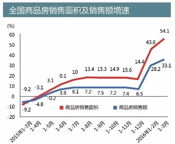 而房地产市场销售端延续去年复苏态势,并在部分城市再现交易火爆场面。一季度,全国商品房销售额同比大增54.1%,其中住宅销售额增长60.3%。